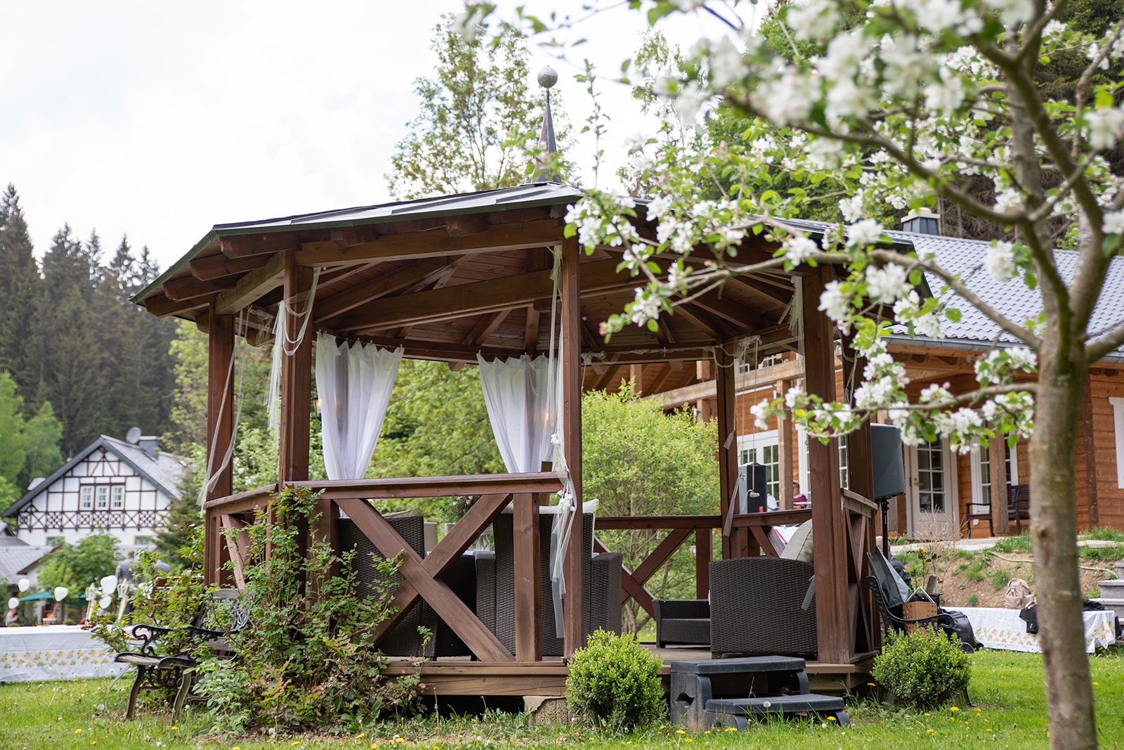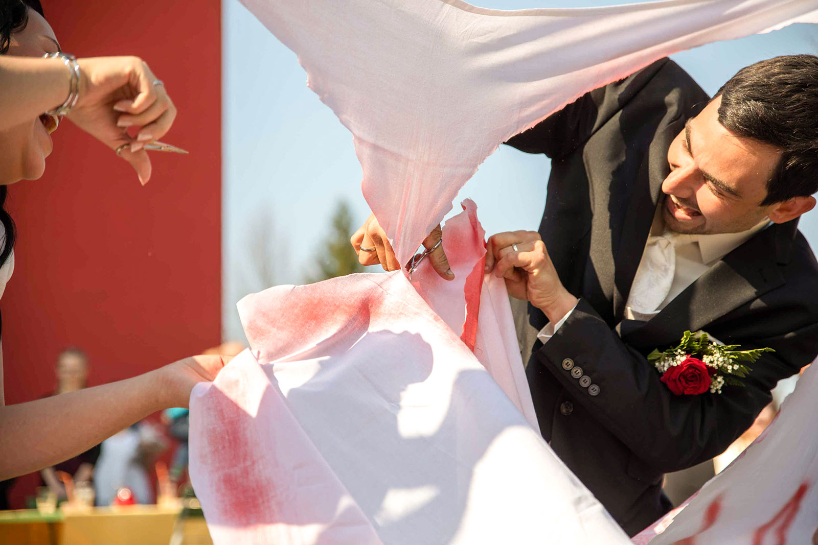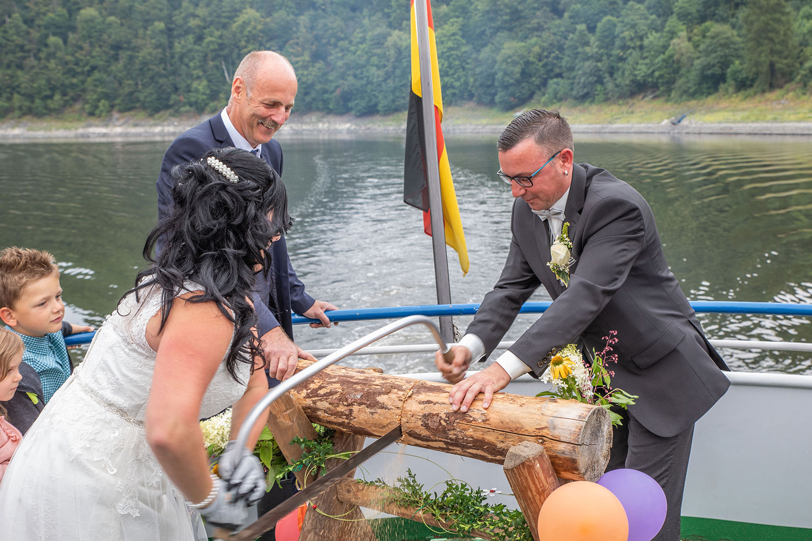 gerührte Brauteltern, lachende Gäste, spielende Kinder, schlafende